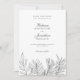 Salve a data com casamento mínimo e na moda O cartão de convite apresenta uma ilustração de arte de palma tropical vintage em um tema simples e elegante a preto e branco. A imagem da palma da folha carregar na parte traseira da placa. Esta papelaria de casamento está pronta para você se adaptar com os detalhes do seu dia especial. Parte de uma coleção cada vez maior.