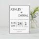 Faça uma declaração com este eterno e o convite clássico de casamento preto e branco. A tipografia branca em negrito sobre fundo preto cria um contraste impressionante e um aspecto único. Perfeito para casamentos, noivados, e outras ocasiões especiais, este convite vai causar uma impressão duradoura. O design simples, mas elegante, certamente se destacará entre os outros.