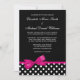 Um teste padrão de bolinhas preto e branco à moda com uma ilustração da fita do rosa quente. Um convite bonito e original do casamento. Personalize facilmente para seu evento.