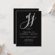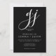 Simples convite de casamento minimalista, com iniciais de roteiro. Tipografia branca a preto.