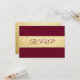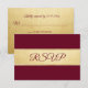 Cartões de resposta de casamento RSVP em glitter de ouro falso e marsala burgundy moderno e elegante. Modelos editáveis - adicione seu texto. Entre em contato com o designer para outras variações. Encontrado na Coleção de Casamentos 'FALL IN LOVE - Burgundy'.