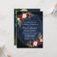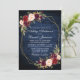 Moderno Convite de Casamento com Moldura Geométrica Dourada Floral Burgundy Aquarela Azul - Madeira Azul Rústica, Parte de Trás da Foto
