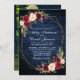 Convite Casamento Burgundy Floral Azul Geométrico Madeira