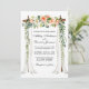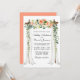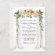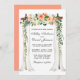 O Cartão de Convite Floral para Casamento de Coral de Coral de Cana-d-Água de Casamento Elegante inclui belos rosas de corais e rosas brancas. O arco da copa do casamento da madeira inclui vegetação botânica.