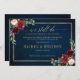 Aquarela burgundy vermelho marinho rosa floral casamento cancelado, mudança de planos, modelo de adiamento com moldura dourada e letras douradas com folhagem botânica verde e folhas de eucalipto em fundo azul-marinho. Este lindo design fácil de personalizar pode combinar facilmente com as cores, estilos e tema do seu casamento e é uma escolha perfeita para casamentos de outono, verão ou inverno. Você pode encontrar mais designs correspondentes na minha loja ou entrar em contato comigo se precisar de ajuda na personalização do design.