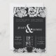 Convite Casamento Cardíaco de Damasco Floral Branco e Pret
