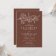 Convites florais elegantes com flores brancas esboçadas e folhas perto do topo do convite com fundo castanho escuro. Personalize o convite de casamento botânico com seus nomes e detalhes de casamento abaixo em letras brancas clássicas. Projetado para coordenar com a nossa coleção de casamento Floral.