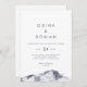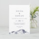 Este simples convite casual de montanha é perfeito para um casamento ao ar livre. O design moderno mínimo apresenta um marinho abstrato e uma paisagem verde azul de montanha de cor d'água.