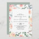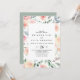 Este elegante convite para casamentos casuais florais geométricos cor-de-rosa é perfeito para um casamento moderno. A design apresenta rosas rosas desenhadas à mão e peônias com folhas verdes e cinzas, inspirando beleza natural.