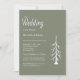 Convite para casamento de pinheiros russos, com um simples design de tipografia em um fundo verde sábio. Com a inscrição personalizável branca, você adiciona suas próprias informações. Excelente para planejar seu dia especial com estilo casual boho.