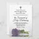 Junte-se no amor e na fé com este belo convite para o casamento! Perfeito para uma cerimônia católica moderna, este convite atordoante apresenta um solteiro roxo empoeirado de longo ou rosa de cor lavanda, que reflete elegantemente na água. Completado com uma cruz ou crucifixo, este convite estende um caloroso convite para que seus convidados se juntem a você em uma massa nupcial alegre, celebrando o sacramento do sagrado matrimônio. Adote a tradição formal e o estilo moderno em seu dia especial, e convide seus amigos e família a compartilhar sua felicidade com este convite perfeito.