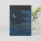 Entra num reino celeste sonhador com os nossos encantadores convites para casamentos temáticos. Inspirados pelos mistérios do cosmos, nosso design apresenta um pano de fundo azul-da-meia-noite adornado com estrelas de ouro delicadas, criando um horizonte celestial mesmerizante. Uma graciosa lua crescente de marfim agarra o céu, acrescentando um toque de elegância eterno. Com fontes clássicas que lembram eras passadas, esses convites evocam uma sensação de nostalgia e romance. Vire-se para revelar um gráfico vintage cativante de um sereno na lua, completando o fascínio celeste. Ilumine a sua história de amor com charme celeste e convide os seus convidados a embarcar numa viagem celestial convosco. Criado pela imprensa simplesmente de farmácia.