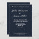 Aproveite a suíte de casamento da Starlight da Noite, incluindo este convite elegante com um marinho de arco azul com fundo estelar macio. Uma escolha bonita e caprichosa para o seu dia mágico.