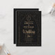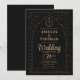 Convite de Casamento Celestial Preto e Dourado com Arco de Lua e Estrelas