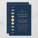 Adicione um toque de elegância cósmica ao seu evento com o nosso Convite para Casamento Celestial Moderno. Mergulhe na simplicidade encantadora do nosso design, refletindo a magia mesmerizante dos corpos celestes. Nossa tendência, mas eterno, mostra uma série de fases da lua articamente rendidas em ouro num fundo azul-marinho impressionante. Este toque de ouro acrescenta uma dica de calor e encanto revoltante à legal base azul da meia-noite, melhorando ainda mais o atrativo da peça. A design mantém uma abordagem minimalista, permitindo que os elementos celestes brilhem verdadeiramente. Você pode personalizar facilmente para atender às suas necessidades, garantindo que cada peça ecoe seu estilo exclusivo.