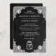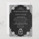 Este convite de casamento rústico preto com um jarro de pedras e um local floral branco em um fundo preto é perfeito para convidar seus hóspedes para o seu país rústico, quintal ou festa de casamento de celeiro inspirado no quadro.