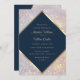 Convite para Casamento Chic Azul de Caligrafia Dourada Elegante