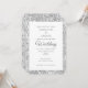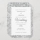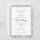 Convite elegante e na moda em cinza prateada e branco com texto de casamento de script de rico e um padrão de falso brilho. Design ideal para aqueles que procuram por algo simples com um toque de chic.