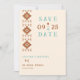 Um casamento ocidental moderno e elegante salva o convite de data com um tema do sudoeste, deserto, apresentando um motif tribal desenhado à mão, estilizado, do sudoeste num estilo de arte expressivo. Uma escolha encantadora para um casamento ocidental, um casamento no celeiro do país, um casamento no deserto, um casamento de vaqueiro ou um casamento no rancho do país.