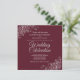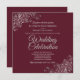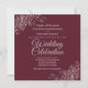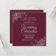 Este belo convite para o casamento apresenta um simples, mas elegante design de prata ou texto de cinza sobre fundo de burgundy ou vinho tinto, com filigre floral de folha de prata ou fritas nos cantos. Bem-vindos seus convidados para compartilhar seu dia especial de celebração de casamento com esses convites lindos. Um casamento é uma celebração única de amor, amigos e família. Torne seus núpcias realmente memoráveis com estes convites bonito e na moda. Este convite é totalmente personalizável, para que você possa alterar o texto de acordo com sua situação e suas necessidades.
