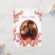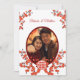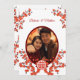 Este elegante convite para o casamento mostra uma foto oval cercada por galhos de flores de cereja vermelha e um símbolo de dupla felicidade ouro em um fundo branco. Nomes de noiva e noiva em um roteiro clássico elegante.