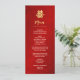 Este moderno cartão de cardápio chinês apresenta um símbolo de dupla felicidade de ouro artístico em um fundo vermelho brilhante. Com nomes personalizados de noiva e noivo, a data do casamento e um texto personalizado em um moderno roteiro escrito à mão.