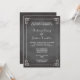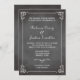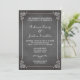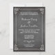 Surpreenda seus convidados com estes convites elegantes e românticos do casamento. As características de design um fundo do quadro-negro com o texto ajustado no giz gostam da rotulação do estilo. O rolo do estilo do vintage decora elegante cada canto. Substitua simplesmente o texto da amostra com sua informação do casamento. O doce, simples com uma sugestão do chique nostálgico, esta estilo do quadro convida fará a seu casamento na moda e memorável.