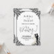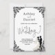 Este elegante convite de casamento preto e branco é perfeito para um casamento moderno. O simples design apresenta uma caligrafia preta elegante, um quadro preto chic e uma ilustração noiva e noiva sobre um fundo branco limpo. O cartão de convite inclui os detalhes do casamento no verso, em vez de pagar um cartão separado.