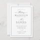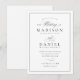 Este convite de casamento elegante e moderno apresenta um roteiro de caligrafia único, emparelhado com na moda. O esquema de cores preto e branco é perfeito para qualquer evento, formal ou casual. Adicione sua foto à parte traseira da placa para obter um detalhe especial e personalizado.