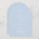 Este clássico convite de casamento de um monograma azul de arca é perfeito para um casamento simples. O clássico design moderno apresenta espirais ricos e turbilhões brancos com magnífica e elegante tipografia à mão.