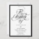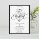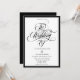 Convite clássico de casamento clássico, preto e branco moderno e elegante. Design com fundo preto profundo, roteiro de caligrafia ''o casamento de'' e detalhes do casamento com quadro branco dentro. Adicione os detalhes do evento usando os campos modelo fornecidos e clique em "personalizá-lo" para editar este modelo.