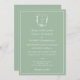 Adicione as iniciais da noiva e do noivo para criar sua crista floral monograma única. Personalize este convite de casamento verde do eucalipto com seus nomes e detalhes de casamento para um convite clássico de casamento. Eu desenhei esta crista simples, na moda, com rosas e botões de peônias brancos com a minha pastilha. É um design original desenhado à mão criado para você. Personalize este eucalipto verde de cor verde ou um convite para comemoração de casamento de cor sábio para o perfeito visual personalizado. Crie o seu escudo familiar de um tipo ou monograma da crista. As rosas e folhas botânicas brancas parecerão excelentes do seu convite, placas de casamento, favores de casamento e muito mais. Todo o script na moda moderno é editável para que você possa adicionar outro texto personalizado curto, se desejar. Revise seus resultados finais para sua satisfação.