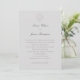 Um design de convite formal, falso emboscado, que é simples, mas sofisticado, eterno e elegante, decora este convite de casamento tradicional com um tema litoral náutico. Uma pequena concha faux emboscada é o suporte estilizado para uma crista. Observe que o relevo é criado por meio de uma imagem e nenhum relevo real aparecerá no cartão. Este clássico e moderno convite de casamento gravado é perfeito para casais que preferem convites de casamento tradicionais formais e que amam o efeito gravado. Uma escolha encantadora para um casamento náutico, na praia, um iate clube, ao lado do lago ou ao lado da água.