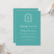 Este elegante design de convite de casamento inspirado em vintage apresenta um par de iniciais de monograma branco em letra serif aberta acima e abaixo de uma linha divisória e rodeado por uma crista de acanthus de uma linha em um fundo turquesa. A parte traseira da placa é turquesa sólida.