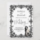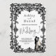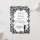 Este elegante convite de casamento preto e branco é perfeito para um casamento moderno. O simples design apresenta uma caligrafia preta elegante, um quadro preto chic e uma ilustração noiva e noiva sobre um fundo branco limpo. O cartão de convite inclui os detalhes do casamento no verso, em vez de pagar um cartão separado.
