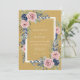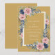 Este design elegante apresenta um fundo amarelo mostarda quente adornado com rosas cor-de-rosa suaves e acentos florais azul-navais profundos. Folhas cinzas e verdes delicadas se entrelaçam pela disposição, criando uma estética atemporal e romântica. Perfeito para casais que buscam um visual inspirado no vintage, a paleta rica combina tons ousados com arte botânica delicada.