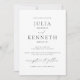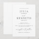 Este convite de casamento clássico com redação tradicional e tipografia moderna sempre parecerá fresco e sofisticado. Sinta-se à vontade para editá-lo com seus nomes e data, local e hora do casamento. Cartões de resposta e detalhes correspondentes, bem como papelaria do dia, também estão disponíveis.