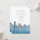 Este convite de casamento aquarela com a silhueta de Miami pode ser personalizado com suas informações em tipografia elegante com o código QR do seu site de casamento no verso. Projetado por Thisisnotme©