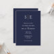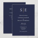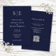 Este convite de casamento azul marinho e dourado, chic e minimalista, pode ser personalizado com as iniciais do seu monograma e as informações do dia do casamento. Com os detalhes do seu site de casamento e o seu código QR no verso. Desenhado por Thisisnotme©