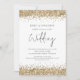 Casamento Código QR Brilho Dourado Moderno. Adicione seu código QR ao site do seu casamento no verso, o que torna esta uma opção conveniente para que os convidados respondam e vejam todos os detalhes sem a necessidade de cartões de RSVP e detalhes separados. Ou você pode remover isso se não for necessário. Um conjunto de letras manuscritas para o casamento e o restante do texto você pode facilmente personalizar, com uma borda de brilho falso dourado em ambos os lados.