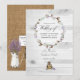 Convite de casamento de algodão lavanda rústico de fazenda country projetado para ser personalizado rápida e facilmente para os detalhes do seu evento. Ideal para qualquer tema ou casamento no jardim. Ideal para qualquer tema ou casamento no jardim. O código QR no verso direciona para o site do seu casamento, onde as pessoas podem saber mais e responder.