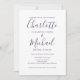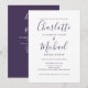 Com nomes de estilo característico, este convite de casamento roxo elegante pode ser personalizado com todas as informações especiais do seu dia de casamento na frente, detalhes do seu site de casamento e seu código QR no verso. Projetado por Thisisnotme©