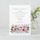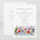 Convite de casamento Código QR boho aquarela de belo prado de flores silvestres coloridas com tipografia cinza elegante e código QR RSVP e detalhes do site do casamento no verso do convite. Arte floral de primavera e verão inclui papoulas vermelhas ardentes com cores pastéis centáureas azuis e roxas e miosótis e cosmos azuis e rosa e folhagem verde delicada. Arte original da artista Catherine Sweetman
