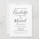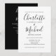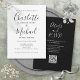 Com nomes no estilo de assinatura, este convite de casamento preto e branco elegante pode ser personalizado com todas as informações especiais do seu casamento no verso, os detalhes do seu site de casamento e o seu código QR. Concebido por Thisisnotme©