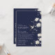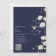 Este convite de casamento floral de jardim chinoiserie azul marinho pode ser personalizado com suas informações em tipografia moderna e código QR do site de casamento no verso. Projetado por Thisisnotme©