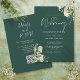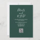 Este convite de casamento com folhas de verde esmeralda botânico elegante pode ser personalizado com suas informações em tipografia sofisticada com os detalhes do seu site de casamento e seu código QR no verso. Projetado por Thisisnotme©