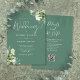 Este convite de casamento com folhas de eucalipto verde elegante e botânico pode ser personalizado com suas informações em tipografia sofisticada com os detalhes do seu site de casamento e seu código QR no verso. Projetado por Thisisnotme©