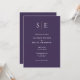 Este convite de casamento roxo e dourado, chic e minimalista, pode ser personalizado com suas iniciais de monograma e informações do dia do casamento. Com os detalhes do seu site de casamento e seu código QR no verso. Desenhado por Thisisnotme©