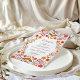 Este design de Convite Colorido à Boda Fiesta Floral Mexicana apresenta um fundo branco brilhante, coberto por um padrão floral vibrante e simétrico composto por flores vermelhas, laranja e amarelas acentuadas por folhas verdes e delicadas formas de bagas. Os elementos florais são dispostos densamente ao longo do topo, do fundo e dos lados, formando um quadro de ornamentado que deixa o espaço central livre para texto ou imagem. A combinação de cores quentes e ousadas e de motivos florais inspirados no povo dá ao design um sentimento festivo, vivo e culturalmente comemorativo.
