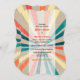 Uma bela design de explosão solar colorida do arco-íris nos anos 70. Uma safra minimalista parece um cartão de convite de casamento com padrões de ranhura e paleta de cores retrógradas para qualquer pessoa que ame padrões de faixas, designs de descamação da paleta de cores retrógradas, etc. Também estão disponíveis itens de papelaria de casamento e outros formatos de convite de casamento.
